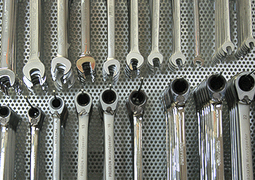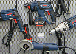 Hallenweise Regale mit technischem Arbeitsbedarf: